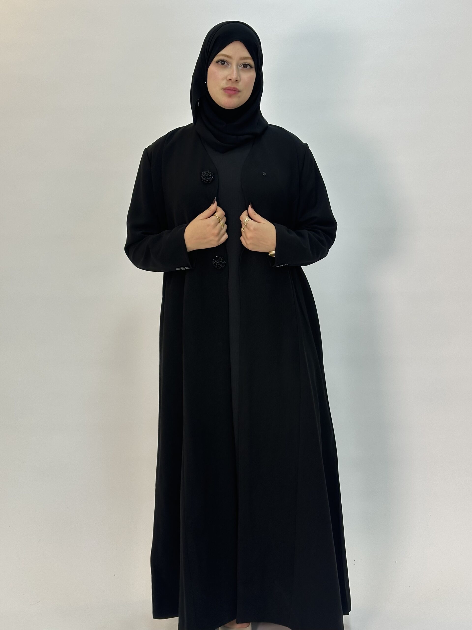 تجسيد للأناقة الهادئة والفخامة البسيطة، صُممت بعناية من قماش ناعم وانسيابي يمنح وقفة أنيقة وراحة مثالية عند الارتداء
